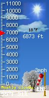 | 1 Rain season: Jan 1st to Dec 31st. 2 Snow season July 1st to June 30th. 3 Snow manually measured usually around 5AM and 5PM. 5 Estimated amount of water needed to replace the water used by plants and evaporation from the past week. (Negative numbers mean amount of water needed, positive numbers mean excess water is present). 6 Air Quality Index is provided by Colorado Department of Public Health & Environment. 9 Solar Index represents either an absolute scale of solar energy (W/m²) using the station’s recorded maximum or a percentage of computed theoretical solar maximum using the station’s location and time of day. These indices differ most when the sun is low on the horizon. The current scale is shown, and will toggle if it or the icon is clicked. 10 Historical average only to day 12 of just the month of February for this station since 2006. 11 Historical average rain this season to day 12 of February for this station since 2006. |