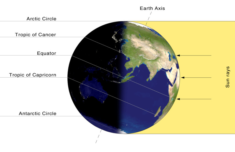 At the poles of the globe, the seasonal extremes will be quite notable. Areas north of the Arctic Circle to the North Pole will see 24 hours of daylight and have a midnight sun. On the opposite end of the globe, the South Pole will have no direct sunlight at all as they are in the depths of their winter.