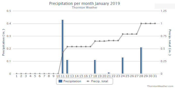 In terms of precipitation, Denver averages 0.27 inches in January. Both Thornton and Denver fell well short with 0.03 inches and 0.14 inches respectively.