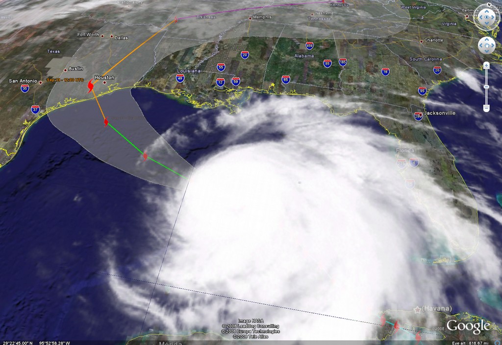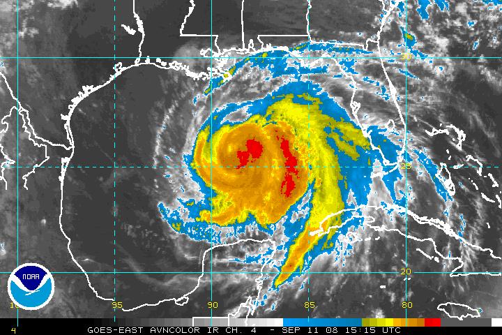 Since leaving Cuba, the storm has continued to grow in size and intensity. Latest hurricane hunter aircraft have measured sustained winds of 100 mph making Ike a category 2 storm. Hurricane force winds extend outward 115 miles from the center of the storm, tropical storm winds extend 255 miles. As Hurricane Ike transits the Gulf of Mexico, it is expected to continue to grow, potentially becoming a category 3 storm with 120+ mph winds.