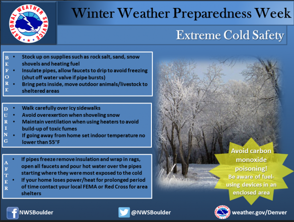 Winter weather can not only be trying on the mind and soul, it also presents very real dangers to the human body. Extreme wind chills can be deadly and bring on the outset of frostbite and hypothermia. Here in Colorado, all residents should be aware of these hazards and be prepared to deal with them.