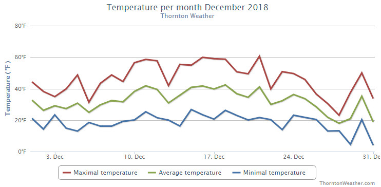 Thornton, Colorado's December 2018 Temperature Summary. (ThorntonWeather.com)